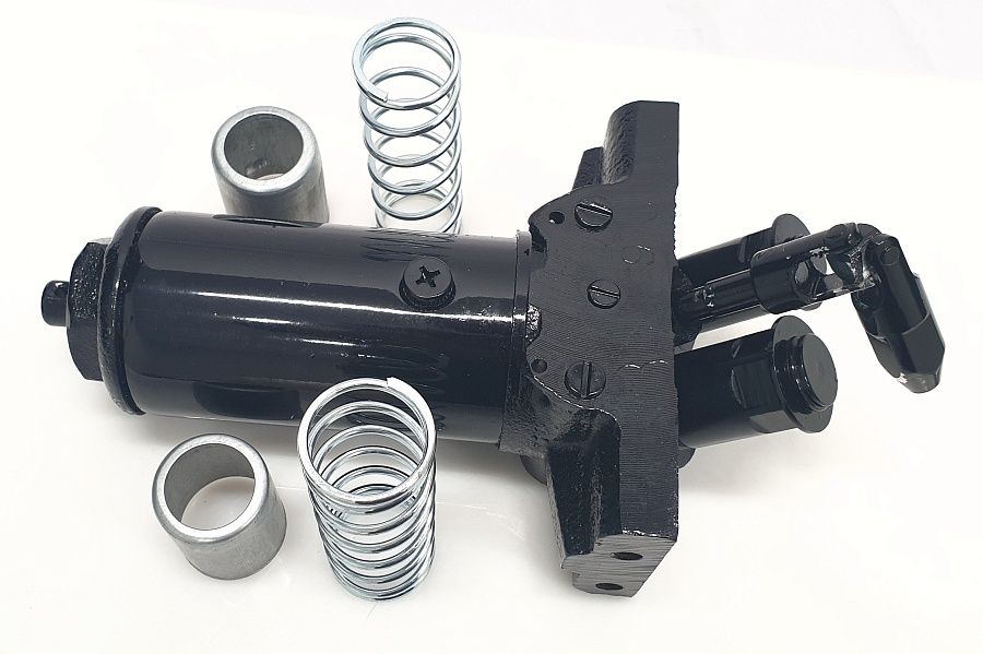 Цилиндр полностью готов к установке, укомплектован плунжерами с пружинами, карданом-клапаном сброса давления, резервуар заполнен гидравлической жидкостью.