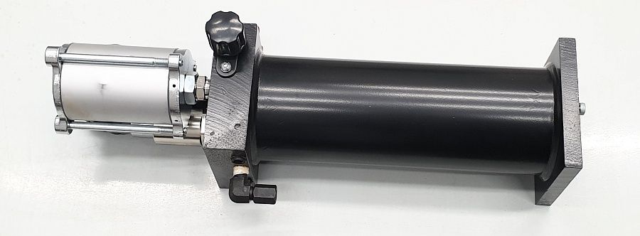 Комплектуется пневмодвигателем, фитингом для подключения к гидроцилиндру. Номинальное давление 70 МПа.