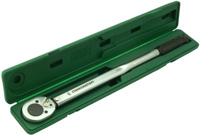 Данный ключ представляет собой трещотку, в привод которой вмонтирован измерительный механизм, который издает характерный щелчок при достижения заданного усилия. И позволяет применять стандартные торцевые головки с посадочным размером 3/4 дюйма.