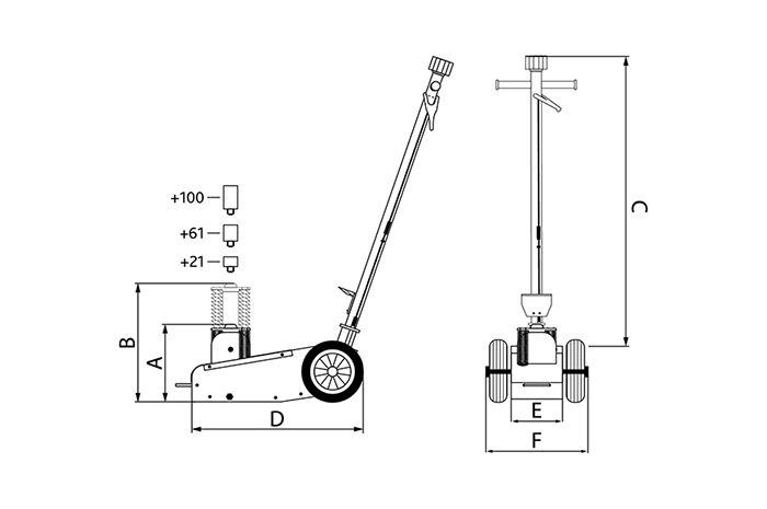 Домкрат подкатной пневмогидравлический на 22 тонны, TQ22001