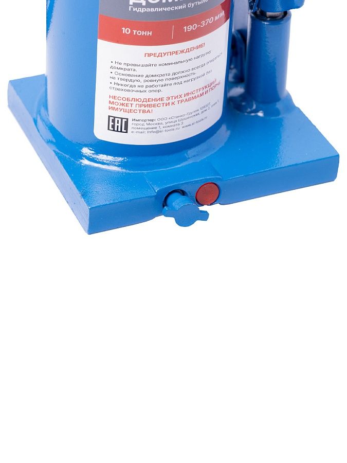 Домкрат бутылочный грузоподъемностью до 10 тонн используется при ремонте и техническом обслуживании транспортных средств, для поднятия тяжестей при строительстве или ремонтных работах.