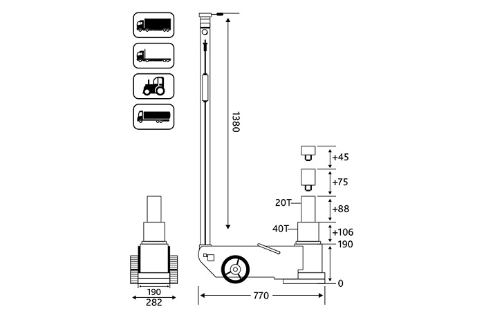 | Грузоподъемность, т | MIN высота подхвата, мм | MAX высота подъема, мм | Проставки |