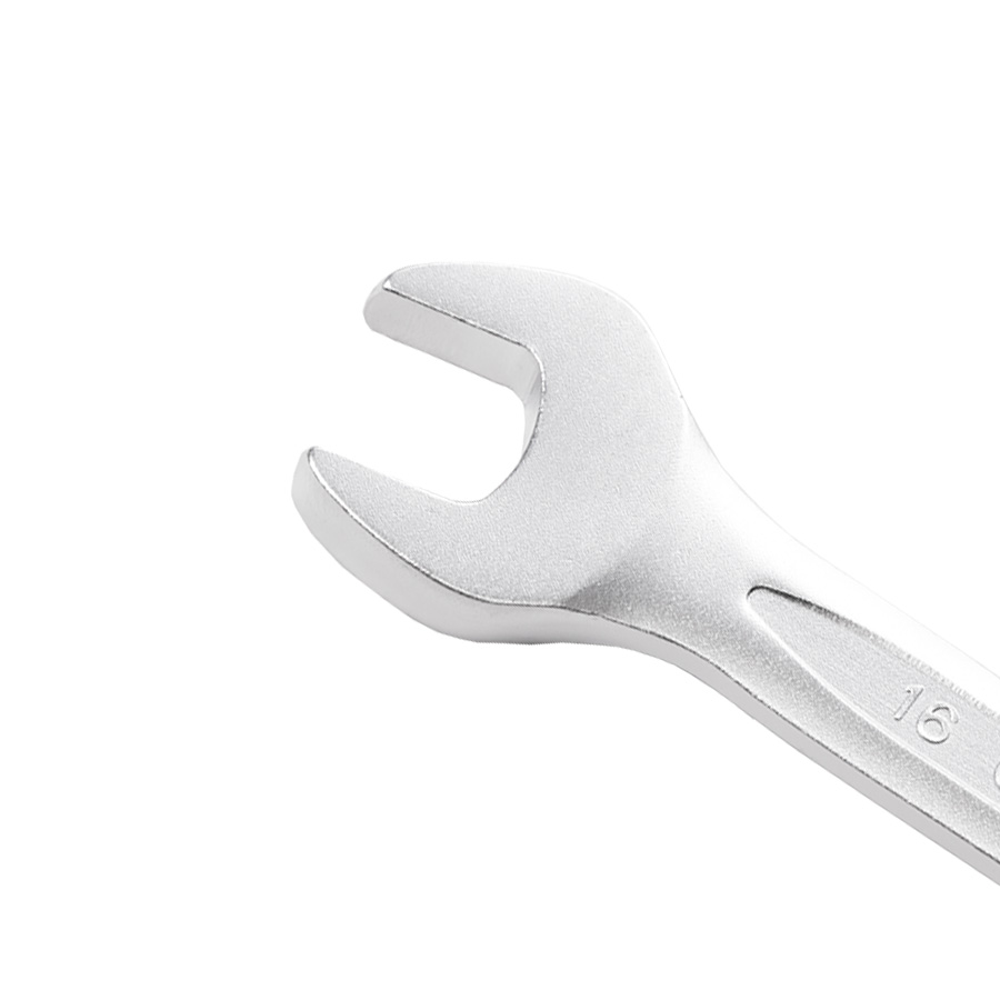 Финишная обработка Soft matt и хром никелевое покрытие комбинированного ключа обеспечивает надежную защиту от коррозии, а также надежный хват и препятствует выскальзыванию инструмента из рук. 12-гранный профиль накидной части подходит к головкам болтов и гайкам как 6-, так и 12-гранного профиля, и обеспечивает 5 градусный шаг перехвата. Специальный отгиб, в 15 градусов накидной части ключа позволит работать в местах с ограниченным доступом к крепежу и поможет подобраться к крепежу как с торца, так и с боку, в зависимости от места выполняемых работ.