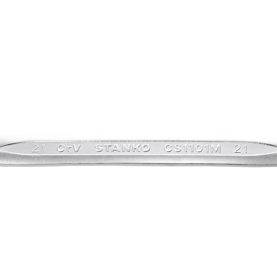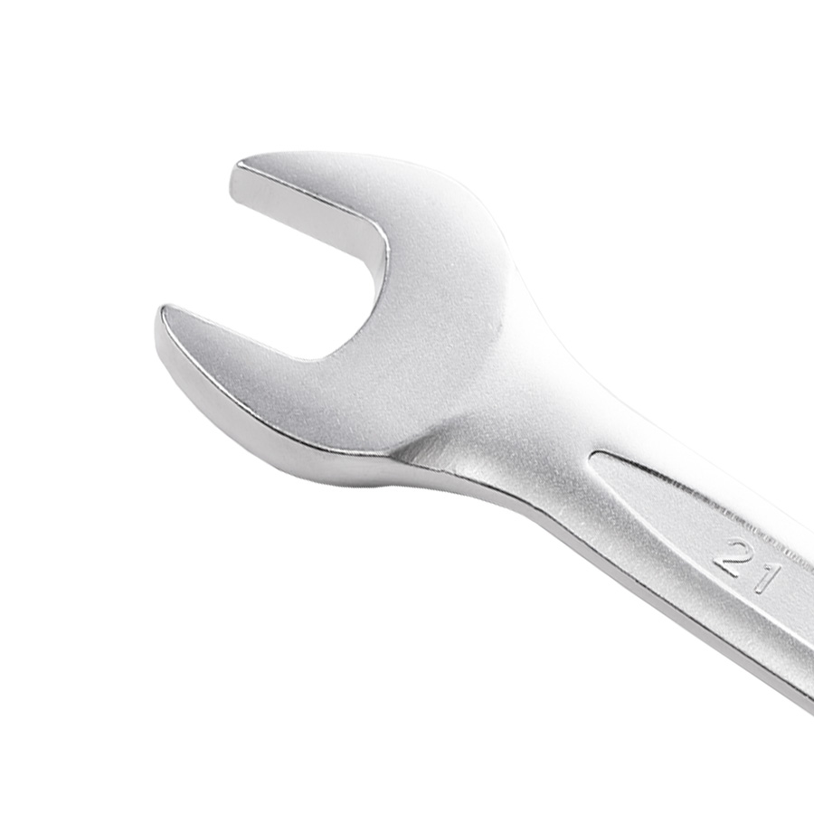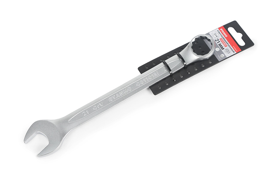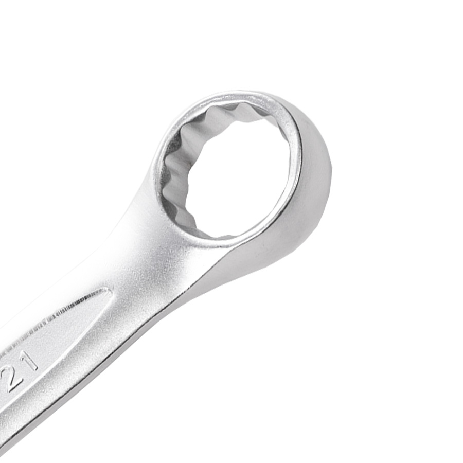 Финишная обработка Soft matt и хром никелевое покрытие комбинированного ключа обеспечивает надежную защиту от коррозии, а также надежный хват и препятствует выскальзыванию инструмента из рук. 12-гранный профиль накидной части подходит к головкам болтов и гайкам как 6-, так и 12-гранного профиля, и обеспечивает 5 градусный шаг перехвата. Специальный отгиб, в 15 градусов накидной части ключа позволит работать в местах с ограниченным доступом к крепежу и поможет подобраться к крепежу как с торца, так и с боку, в зависимости от места выполняемых работ.