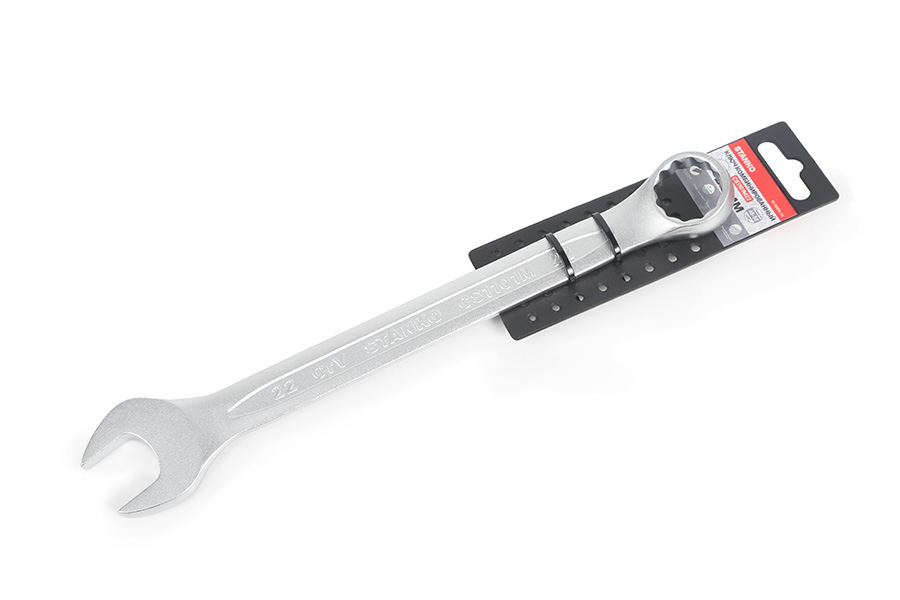 Финишная обработка Soft matt и хром никелевое покрытие комбинированного ключа обеспечивает надежную защиту от коррозии, а также надежный хват и препятствует выскальзыванию инструмента из рук. 12-гранный профиль накидной части подходит к головкам болтов и гайкам как 6-, так и 12-гранного профиля, и обеспечивает 5 градусный шаг перехвата. Специальный отгиб, в 15 градусов накидной части ключа позволит работать в местах с ограниченным доступом к крепежу и поможет подобраться к крепежу как с торца, так и с боку, в зависимости от места выполняемых работ.