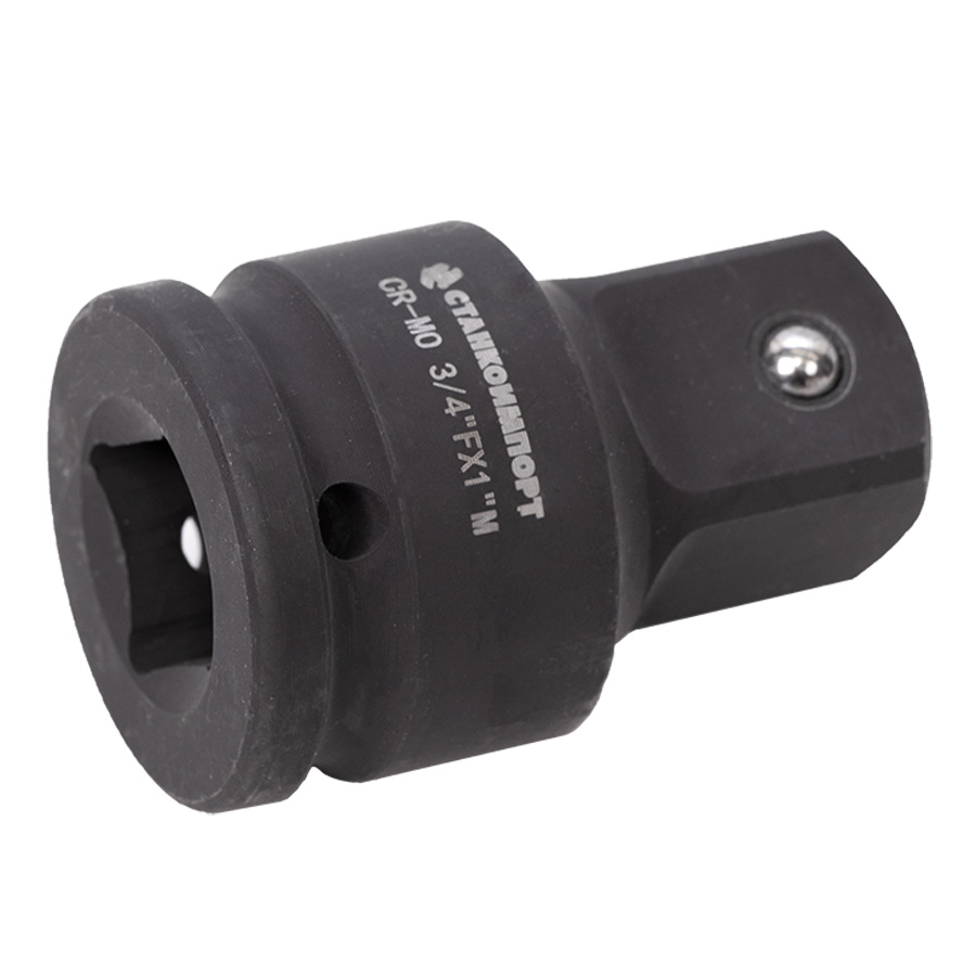 Переходник ударный 3/4"-1" применяется для передачи крутящего момента на торцевые головки от пневматического или электрического инструмента ударного действия.