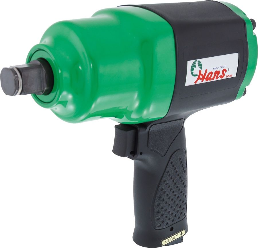 Hans 86117 – безусловно, самая выносливая, прочная и легкая модель от Hans. Этот пневматический гайковерт можно рекомендовать к использованию не только на СТО и шиномонтажах (для грузовых лучше подойдет гайковерт пневматический ударный 1"), но и на производстве. Однако надежность и прочность имеют обратную сторону в виде лишнего веса, который у 86117 составляет 3,89 кг, хотя максимальное рабочее усилие 1763Нм (не стоит путать с пиковым, которое указывают различные производители, у данного гайковерта достигает 2400Нм) позволяет смириться с легким композитным гайковертом весящим менее 4 кг.