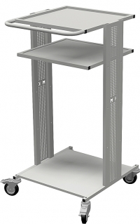 Имеет возможность горизонтальной и вертикальной установки системного блока, регулируется в 3 положениях по высоте полки (шаг 250мм), возможна установка тумб серии Стандарт, все колеса поворотные и 2 из них с тормозом, покрыта порошковой покраской. Габаритные размеры – 600х500х1010h Масса нетто/ брутто 17,7/20 кг V-0,3куб. Допустимая нагрузка на тележку до 200кг, допустимая нагрузка на полку до 80кг