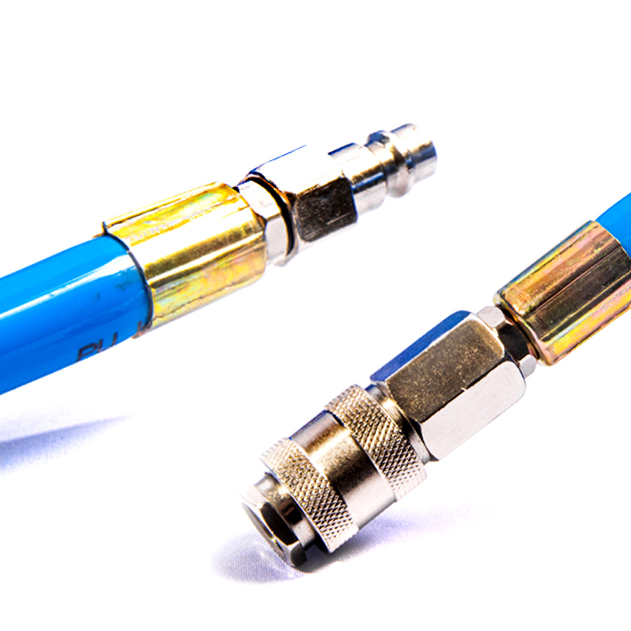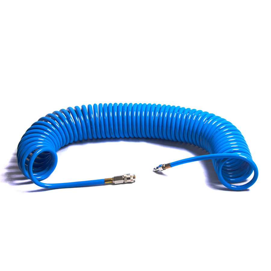 Шланг воздушный спиральный применяется для подачи воздуха от компрессора или линии сжатого воздуха к пневмоинструменту. За счет своей формы в виде спирали, шланг имеет достаточно компактный размер и не мешается под ногами.