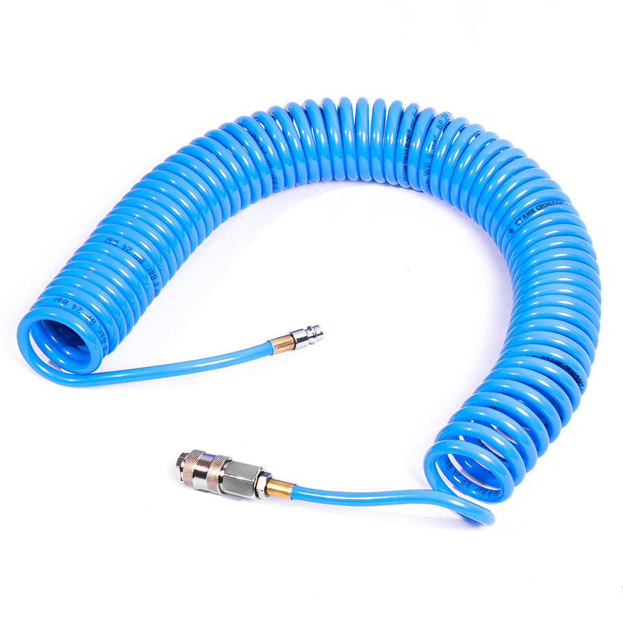 Шланг воздушный спиральный применяется для подачи воздуха от компрессора или линии сжатого воздуха к пневмоинструменту. За счет своей формы в виде спирали, шланг имеет достаточно компактный размер и не мешается под ногами.