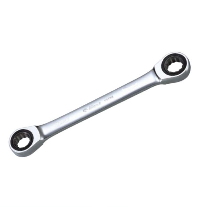 Накидной гаечный ключ с трещоточным механизмом представляет собой конструкцию, состоящую из двух накидных профилей самых популярных или соседних размеров.