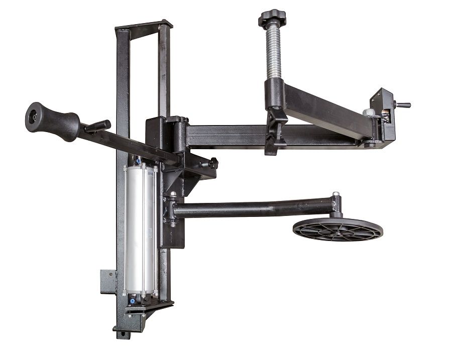 Третья рука (вспомогательное устройство) для работы с жесткими низкопрофильными шинами для станков - многофункциональное приспособление, которое предназначено для монтажа/демонтажа низко профильных, широких и жестких шин. Данная установка значительно ускоряет процесс бортировки.
