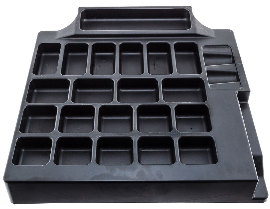 Рабочая поверхность имеет раздельные ячейки для хранения инструмента, балансировочных грузиков и расходных материалов.