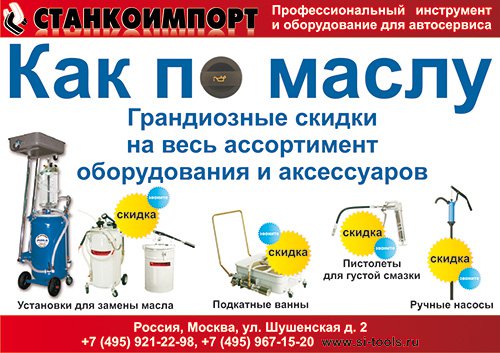 Акция «Как по маслу» 27 марта 2013 СТАНКОИМПОРТ Друзья! Мы даем старт новой акции «Как по маслу»! В акции участвует итальянское оборудование OMA для замены масла. Звоните нашим менеджерам, обещаем феноменально низкую цену!