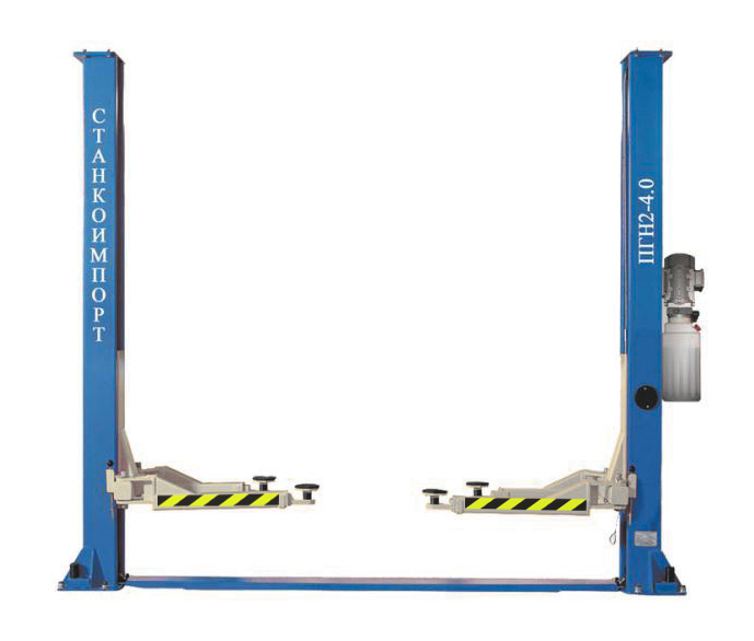 Изначально, подъемник ПГН 2-4.0 имел стандартные «заводские» цвета – темно-синие стойки и ярко-желтые «лапы». Естественно, уже сейчас, на современном сервисе, таким откровенно «китайским» цветам не рады, поскольку подобная цветовая гамма морально устарела и сейчас востребованы уже иные, современные «европейские» цвета для автосервисного оборудования. Именно поэтому подъемники «Станкоимпорт» ПГН 2-4.0 окрашены по-европейски, на итальянский манер расцветки – изящный светло-синий цвет стоек и спокойный светло-серый цвет «лап». Чтобы «лапы» все же были заметнее в плане безопасности – их дополняют сигнальные желто-черные полосы: