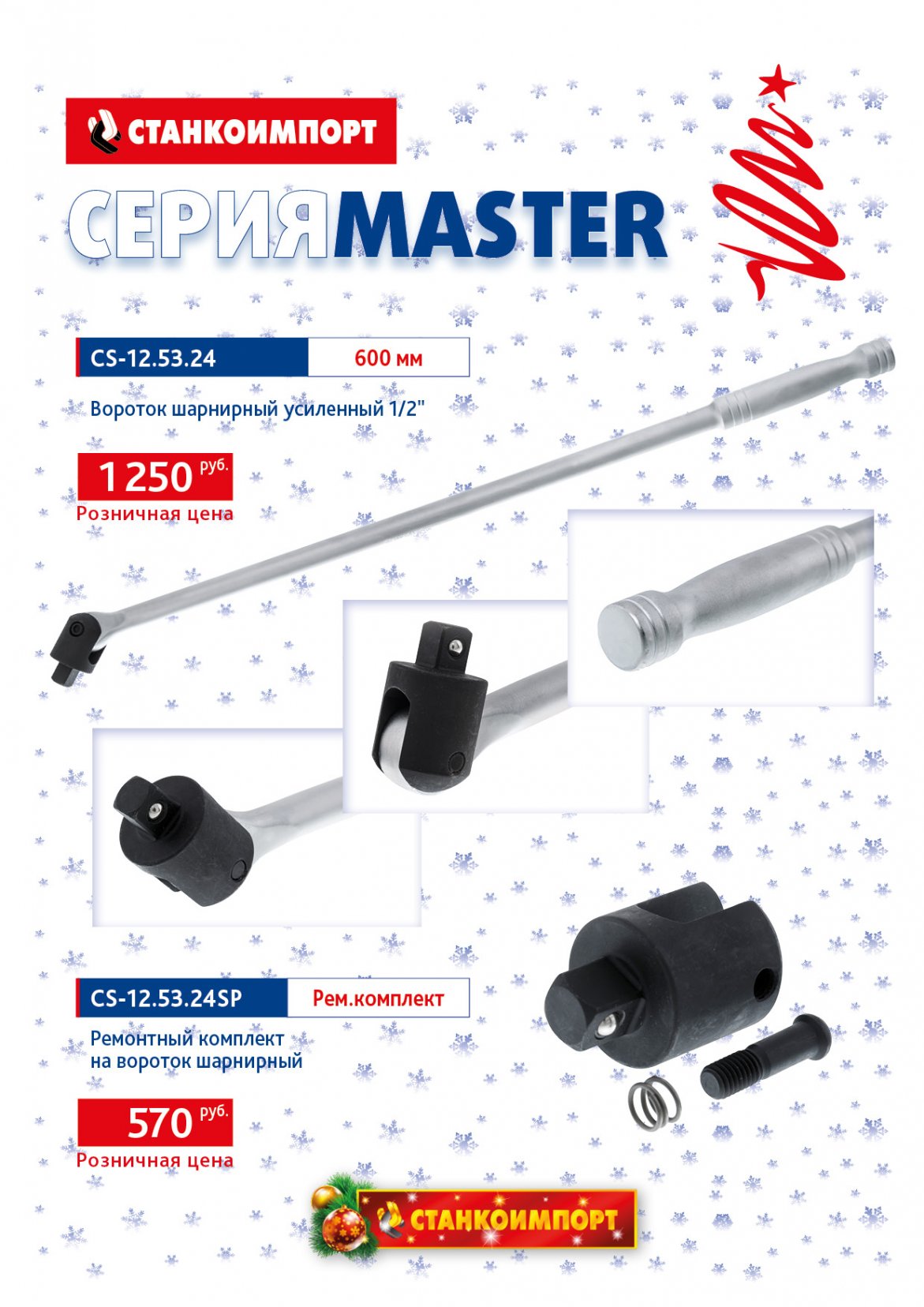 арт. CS-12.53.24 воротком шарнирным усиленным на 1/2", 600 мм и арт. CS-12.53.24SP ремонтным комплектом на вороток шарнирный.