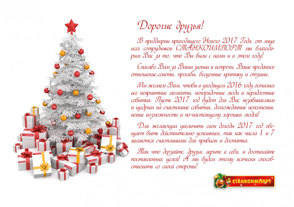 Последний рабочий день компании СТАНКОИМПОРТ  в 2016 г. - 30.12.2016 г., мы работаем до 16.30.