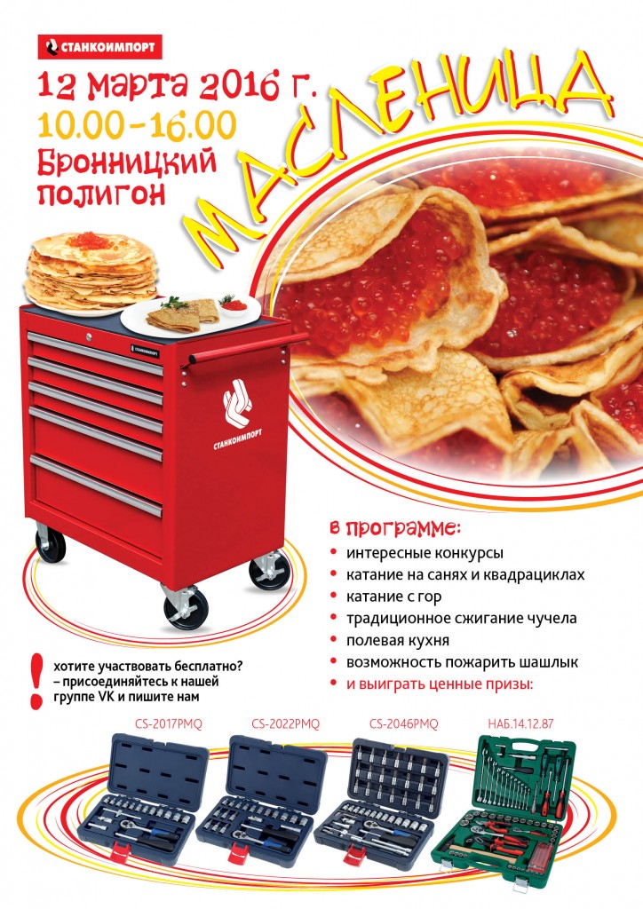 Компания "Станкоимпорт" и сообщество Drive.ru Москва подготовили для вас интересную программу, традиционные конкурсы с ценными призами и вкусные блины! Схема проезда - здесь