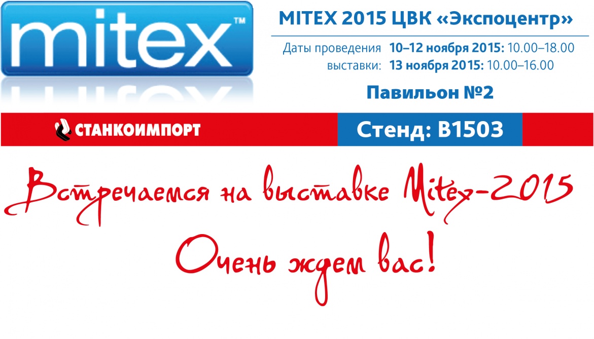 Станкоимпорт приглашает вас на Mitex 2015 23 октября 2015 СТАНКОИМПОРТ 8-я Московская международная выставка инструментов, оборудования, технологий Mitex 2015 обещает быть интересной, мы приглашаем вас на наш стенд.
